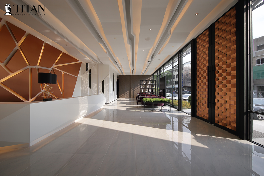 實創設計 設計總監 賴姿伊 將空間留白為底蘊,透過簡約俐落線條規劃,層次分明的材質拼貼,融入暗褐木紋等元素,於現代美學中融匯東方的靜謐優雅。其以獨到的複合時尚眼光,將古典韻味交織當代設計語彙譜寫出的接待中心《創流藝想》,吸引評審目光,斬獲本屆賽事的「銀獎」殊榮!
