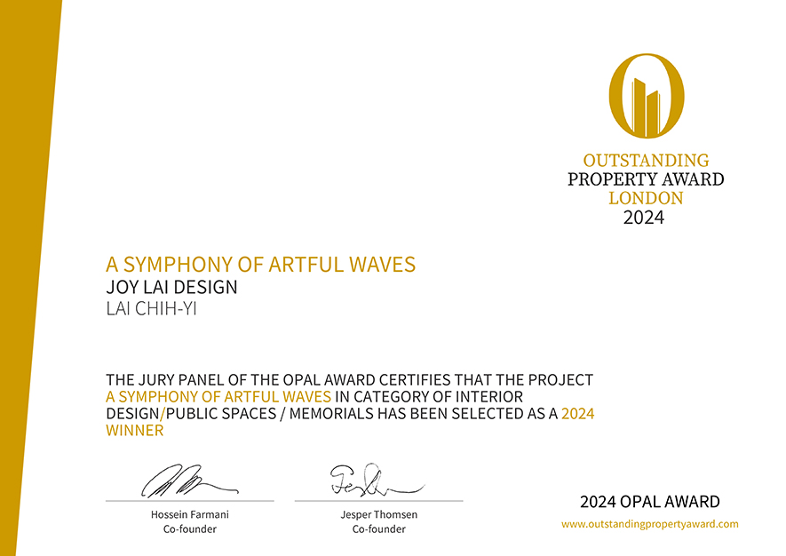 OUTSTANDING PROPERTY AWARD LONDON,OPAL(英國倫敦傑出地產大獎)由全球知名企業集團Farmani Group組織,並以招攬全球最佳建築師、室內設計師與房地產開發商為目標,在創造異業菁英聯合平台的同時,找尋各地最富創造力、革新感、社會影響力與永續性的設計方案。參與者有機會替自己最新穎的企劃,博得國際能見度,並且和產業的先驅及專業人士進行交流。