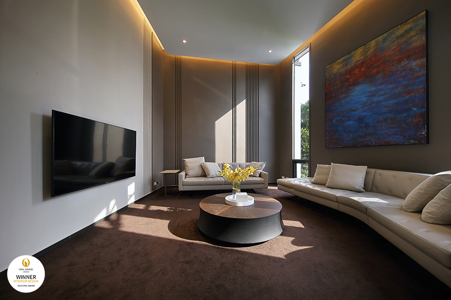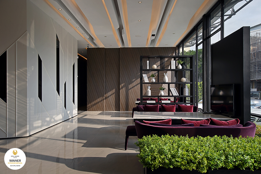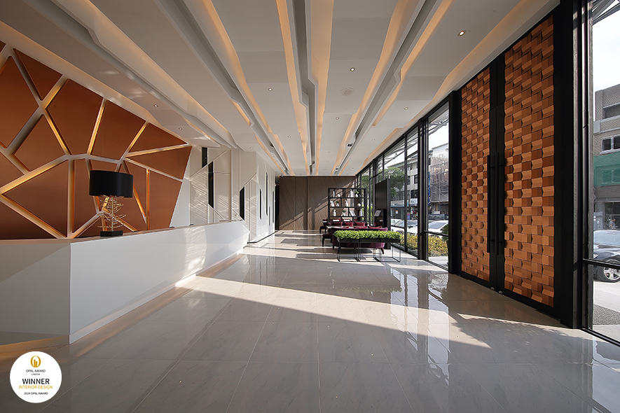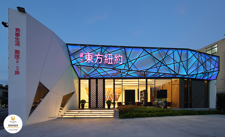 業主以年紀較輕的首購族為目標客群,實創設計 設計總監 賴姿伊 便為接待中心外部勾勒俐落的玄色線條,輔搭可變換多樣色光的LED燈板,描繪如紐約街頭摩登酒吧的時尚意境,進一步增加年輕訪客入內諮詢的意願;顧及業者需求的時髦商空《創流藝想》吸引一眾評審目光,摘得本屆賽事「Winner」獎項!